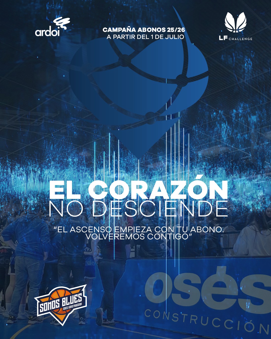 Con el lema “El corazón no desciende”, el equipo Osés Construcción lanza su nueva campaña de abonos para la temporada 2025/26. El objetivo es dar continuidad al gran respaldo social logrado el curso pasado, en el que el Polideportivo Arrosadía registró una magnífica entrada en cada encuentro.