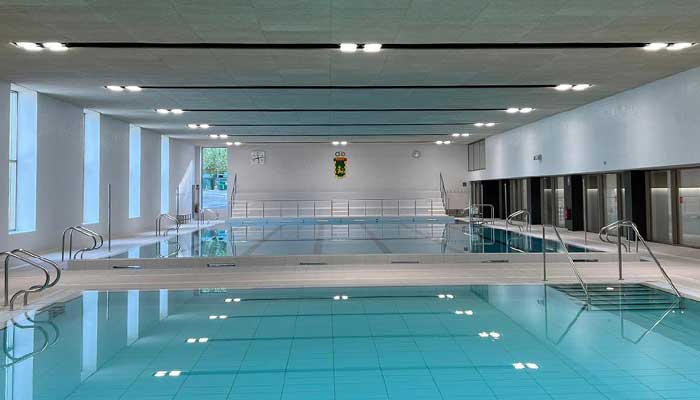 La Ciudad Deportiva Amaya inauguró recientemente la nueva Zona de Aguas. En este nuevo edificio, que ha sido proyectado por los arquitectos Iñigo Araiz y Pablo Floristán y ejecutado por Osés Construcción cuenta con una nueva piscina cubierta de 25 metros, un balneario spa, un espacio dedicado a la escalada y dos pistas de squash.